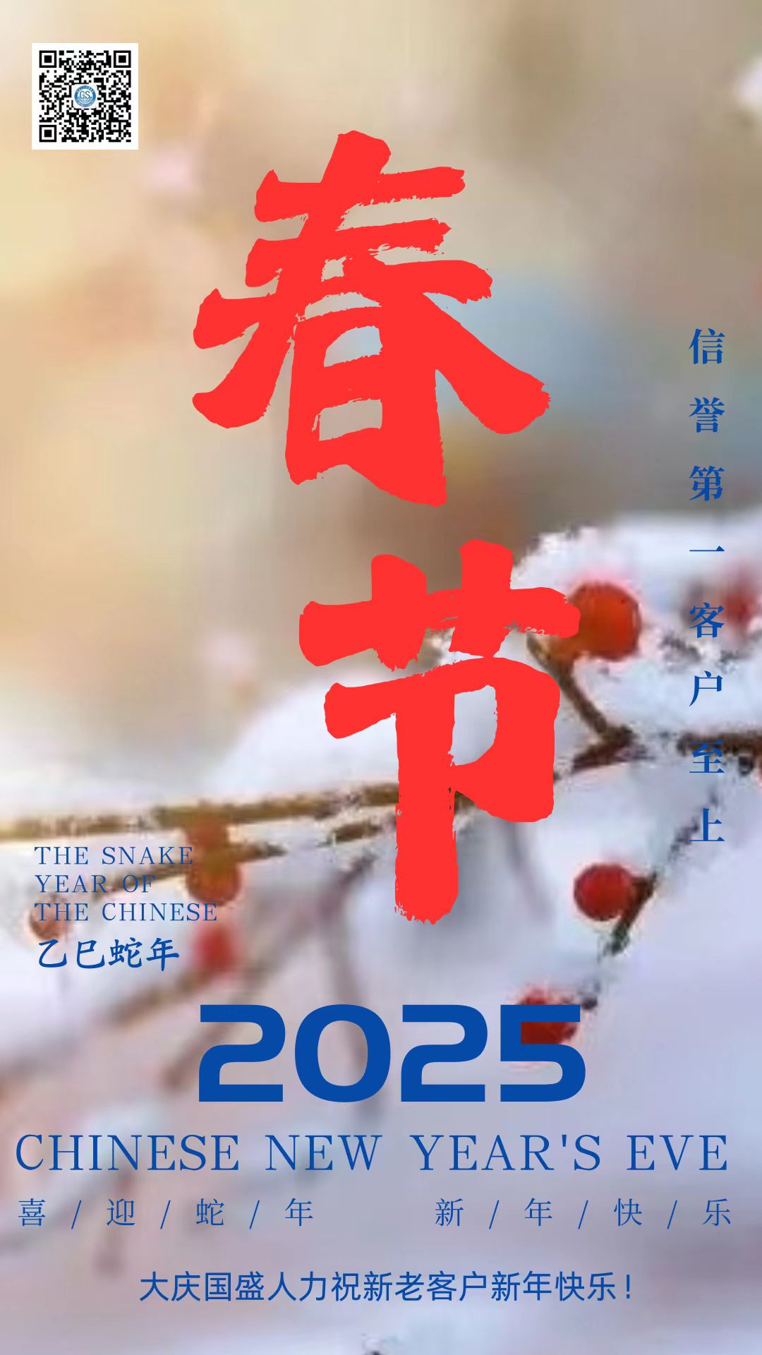 鞭炮聲聲,喚醒了沉睡的新年;瑞雪飄飄,帶來了新春的祝福。在這辭舊迎新的美好時刻,大慶市國盛人力資源管理有限公司向一直以來支持和信任我們的客戶、合作伙伴,以及每一位關注我們的朋友,致以最誠摯的新年祝福!
